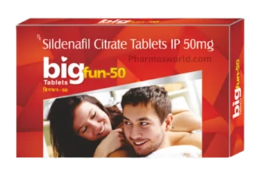 Bigfun 50 mg Tablet contains Sildenafil, used to treat erectile dysfunction (ED) in men. It helps increase blood flow to the penis during sexual arousal, giving help in getting and keeping an erection. It usually works within 30 to 60 minutes after taking one tablet, with or without food. Use only as prescribed, and do not take more than one tablet in 24 hours. Avoid it if you have heart problems or take nitrate medicines. Always follow your doctor’s instructions for safety.