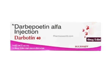 Darbotin 40 Injection is a prescription treatment used to manage anemia in patients with chronic kidney disease (CKD) or undergoing chemotherapy. It contains Darbepoetin alfa, a synthetic form of erythropoietin that signals your bone marrow to make more red blood cells. This helps increase hemoglobin levels, reduce fatigue, and lower the need for blood transfusions. Darbotin 40 is administered by healthcare professionals and requires regular blood tests to monitor safety and effectiveness. Use under medical supervision is essential.