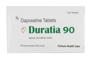 Duratia 90 mg Tablet contains Dapoxetine, a medicine used to treat premature ejaculation (PE) in men aged 18 to 64. It works by increasing serotonin levels in the brain, helping to improve control over ejaculation and prolong the time to ejaculation during sexual activity. The recommended dosage is one tablet taken 1 to 3 hours before anticipated sexual activity. It is not intended for daily use and should not be taken more than once every 24 hours. Always follow your healthcare provider's instructions.