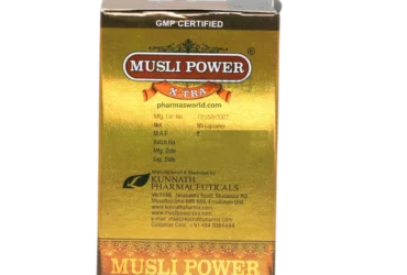 Kunnath Musli Power X-tra is an Ayurvedic herbal capsule blend featuring nine potent ingredients, such as Safed Musli, Kapikachchu, Ashwagandha, Moringa, and Shilajit, designed to support vitality, stamina, and sexual wellness in men and women. It may aid in improving energy levels, easing fatigue, and addressing mild issues like low libido, erectile strength, semen quality, and premature ejaculation, without known side effects. Typically taken twice daily after meals with water or milk, consult a healthcare provider before use.