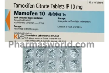 Mamofen 10 Mg (Tamoxifen Citrate) is a prescription hormone therapy medication containing tamoxifen citrate 10 mg, used primarily for hormone-receptor-positive breast cancer in both early and advanced stages. It works as a selective estrogen receptor modulator (SERM), blocking estrogen from fueling cancer cell growth in breast tissue. The 10 mg dose is sometimes prescribed when a lower dose is clinically appropriate, or when used in split-dosing schedules. It's also used for breast cancer risk reduction in high-risk women. Long-term use requires regular monitoring for blood clots, uterine changes, and other side effects.