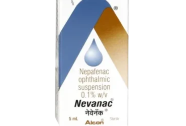 Nevanac Eye Drops 5 ml is a prescription ophthalmic solution containing nepafenac, a nonsteroidal anti-inflammatory drug (NSAID). It is primarily used to reduce pain and inflammation following cataract surgery. The recommended dosage is one drop in the affected eye three times daily, starting one day before surgery and continuing through the first two weeks postoperatively. Always follow your healthcare provider's instructions for optimal results. Avoid using contact lenses during treatment unless advised otherwise.