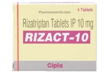 Rizact 10 Mg is a rizatriptan 10 mg tablet used for the fast treatment of migraine attacks with or without aura. It is taken at the first sign of migraine pain and can be repeated after 2 hours if needed, within daily limits. Many people feel improvement within 1 to 2 hours. This is an as‑needed medicine, not a daily preventive. Follow your clinician’s plan closely, especially if you take propranolol or have heart, liver, or kidney concerns.