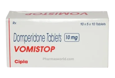 Vomistop 10 mg Tablet, containing Domperidone, is a prokinetic anti-emetic medication used to treat nausea, vomiting, and indigestion. It works by blocking dopamine receptors in the brain and improving gastric motility, facilitating the movement of food through the stomach and intestines. Commonly prescribed for conditions like gastroparesis and motion sickness, it helps alleviate symptoms such as bloating and fullness. It is typically taken 15 to 30 minutes before meals. Always follow your healthcare provider's instructions regarding dosage and duration.